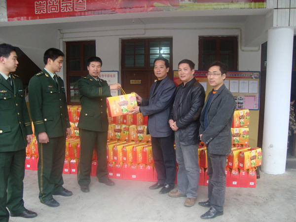 2010年02月02日,市委常委丁瑞康同志攜同新味公司總經(jīng)理黃細(xì)忠同志到駐扎在福安市溪潭鎮(zhèn)的森林公安武警進(jìn)行慰問。感謝森林公安武警為福安人民所做的貢獻(xiàn),并給武警管兵們送去由新味公司所生產(chǎn)的年貨禮品。