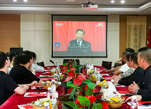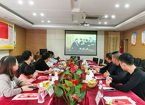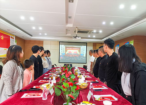 2022年10月16日上午,公司董事長黃細忠?guī)ьI公司黨員、入黨積極分子和職工們一起觀看